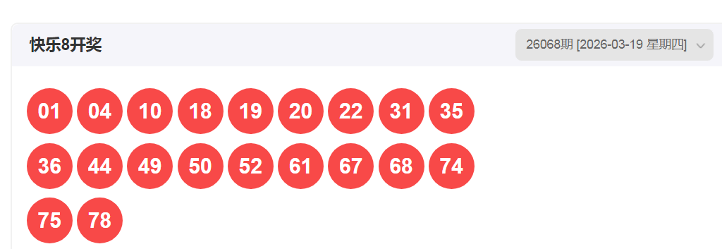 一、快乐八2026068期开奖号码