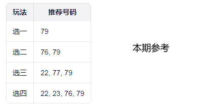 一、本期推荐号码组推荐