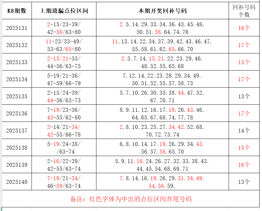 /如图,上期的遗漏号码在下期开出10个左右,即为回补号码。定准点位区间首尾号码是关键!以上期2025140期(会员专区数据)为例,定位4个遗漏区间,围中13码!结合上期开奖号码,以跨度值大于或等于7为依据,本期关注2个遗漏区间:19-27/60-78;重点关注遗漏-区间:****(会员专区可见),区间遗漏号码可能在本期回补开出。注意区分遗漏区间回补号码和大底号码,不要混淆。个人分析,仅供参考。