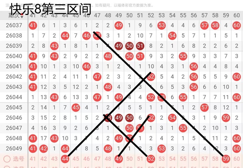 第三区间44这个位置的话,还是考虑到有一个重号的一个走势,那么49得到了个一一的走势,也是可以考虑有一个不错的落位,那么32号这个位置的话,还是考虑到有一个偶数的一个洗脸的走势,59这位置考虑到两个60,然后旁边坐一个59还是可以考虑的。