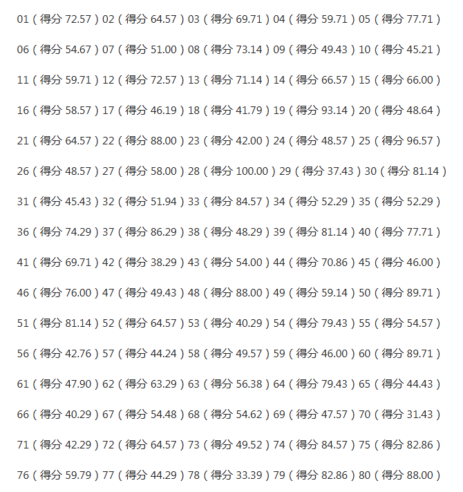 76=27 次 77=20 次 78=17 次 79=25 次 80=28 次