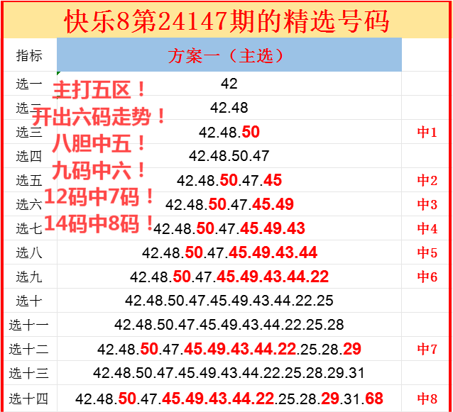 147期:五区开出六码!(8码中5!9码中6!12码中7码!14码中8码!)