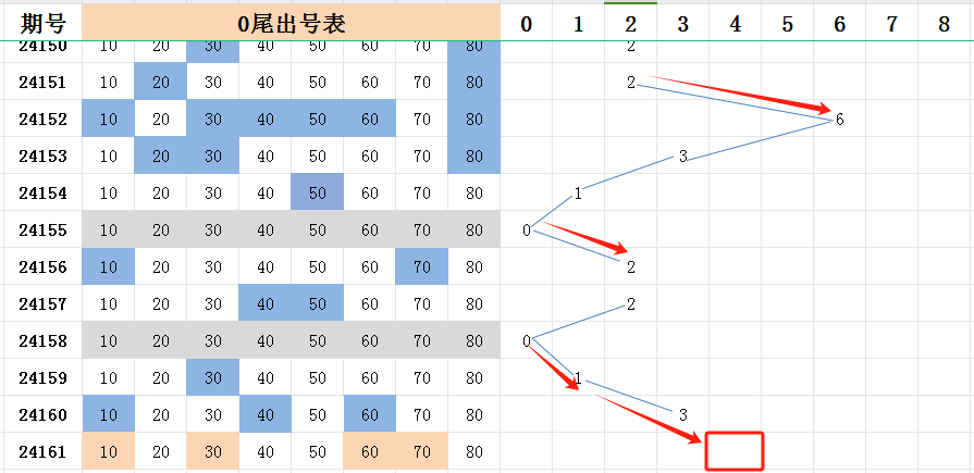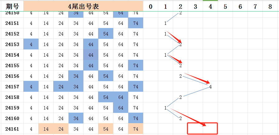 考虑四尾的号码,可以直接看顺延开出三码走势,甚至是开出四码走势。四尾的整体走势还是很不错的,在本期尾号中,至少能排前三。大家可以多考虑一下四尾的号码。