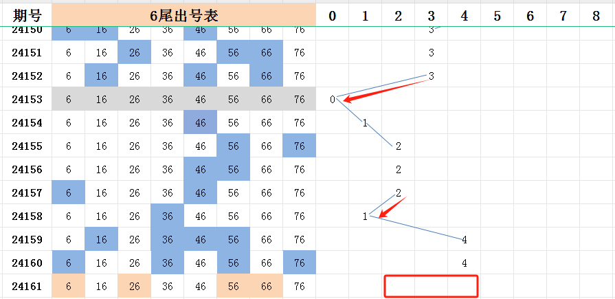 0尾上期开出三码,考虑本期0尾的号码,主要考虑152期0尾开出六码走势,近期能开出四码走势或者五码走势和152期相对应。再者本期0尾的号码在后尾中也是不错的尾号。