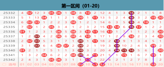 本区上期开出3码的区间布局,那么在本期我们优先关注的就是形态的出号点位,05 10的下方就是我们考虑的出号重点位置,这个位置上我们优先考虑的还是09 11的出号选择,那么在05 06的位置上我们做防守的布局点位,那么在空位上我们关注的还是小周期的出号点位,目前的空位小周期的出号是不断的,那么在01 02 03 14 15 16 19 20的出号点位,我们起码是要考虑一码的出号位置的,其他位置就不是我们考虑的重点位置了。