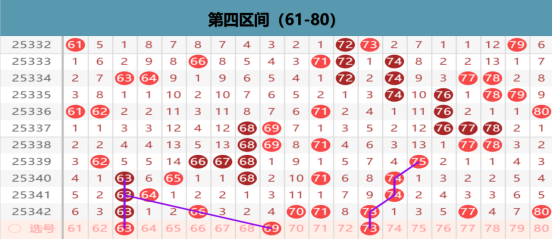 本区上期开出7码的区间布局,那么在本期我们优先关注的就是区间两组同尾的出号位置,63 73的下方出号和70 80的下方出号,我们可以考虑做一重一分的可能性,这个位置上我们是要考虑容错的可能性的,选择63的下方出号就是放空73的下方出号,反之一样的,那么在区间上我们还是要考虑重码的可能性的,优先考虑的就是连码的下方出号的点位,70 71的择一出号,那么在孤码的位置上也是有可能出号的,66 77 80的择一出号的可能性,那么其他位置就不是我们考虑的重点位置了。