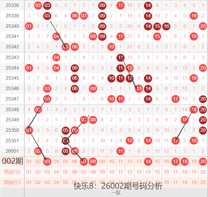 26002期,我们先看下一区间:01-20号码球,如下图: