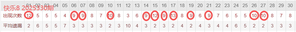 快乐8热号选择标准参考图(以30期为基准)所圈即为部分热码示意图