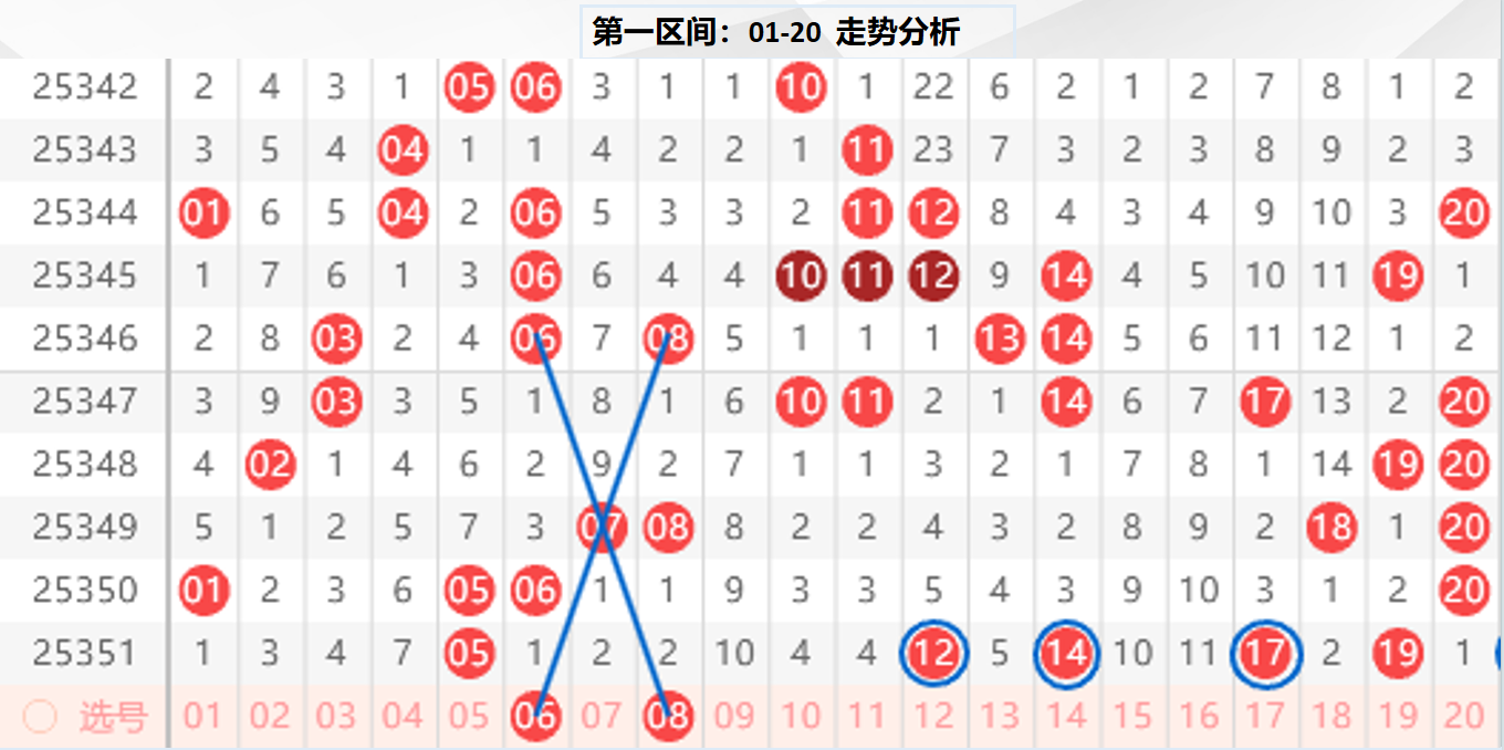 一区分析:【01-20】(走势图标注号码非小黄车大底,请谨慎参考,具体思路将在直播间分享讨论)
