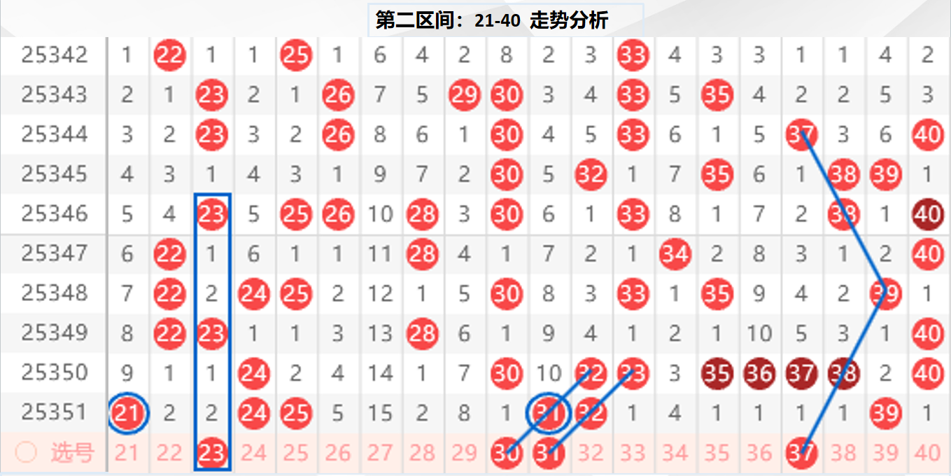 二区分析:【21-40】(走势图标注号码非小黄车大底,请谨慎参考,具体思路将在直播间分享讨论)