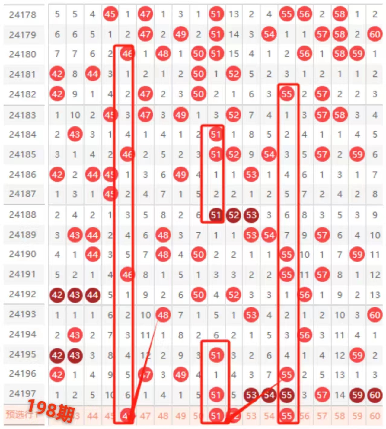 51 52号:这两个号码本期是二选一的下落走势。看好51号继续走重号。