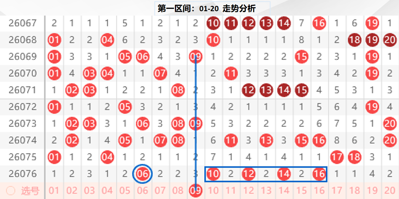 一区分析:【01-20】(走势图标注号码非小黄车大底,请谨慎参考,具体思路将在直播间分享讨论)
