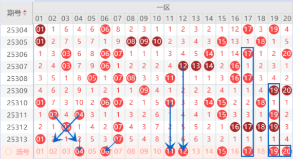 下图为01-20号数字区间走势分析图: