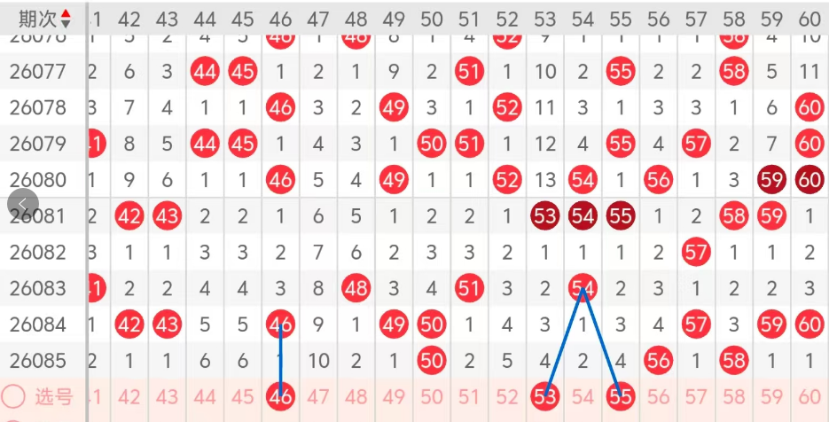 第三区间的走势分析:第三区间上期开出了三个号码球,主要的落号点位在三区间的后半区,走出了三偶的形态走势,上期三区间的前半区落下了一个号码球,后半区落下了两个号码球,整个三区间处于走冷的趋势,根据三区间的走势规律,今天的三区间我们主看前半区中间位置46的隔期回补,再看后半区53 55组合的落位,至少有一码落下,主看53的回补!这三个号球建议大家打个三胆拖,或者打个三码复二比较稳妥,参考为主!