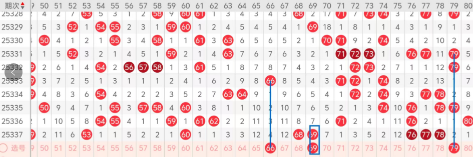 第四区间的走势分析:第四区间上期开出了五个号码球,主要的落号点位在四区间的前后半区,走出了两奇三的形态走势,上期四区间的前半区落下了两个号码球,后半区落下了三个号码球,整个四区间处于走暖的趋势,根据四区间的走势规律,今天的四区间我们主看前半区空区段号码的回补,主看66这个号码球的回补,再看69的重码,组成66 69热码的组合,最后关注凤尾处79的落位,走出了对称的形态走势!这三个号码球同落的机会很大,可以打个三胆拖,或者打个三码复二较为稳妥!参考为主!