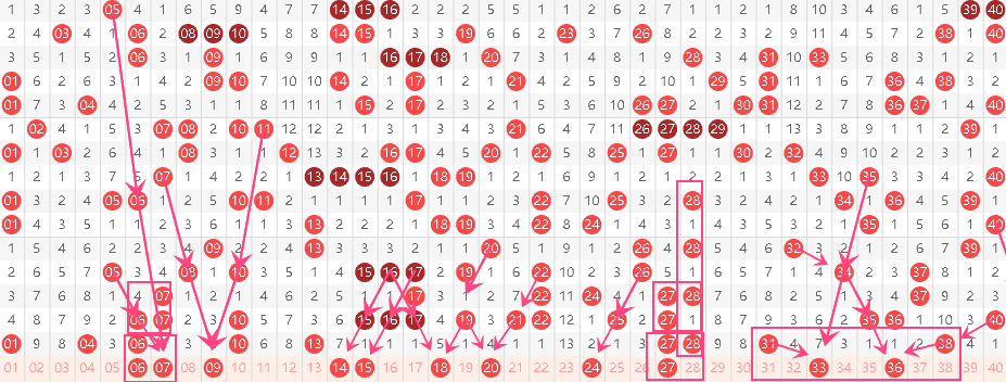 - 21-40区间:24、27、33、36(4个号,上期这儿爆热,留着27重号续热度,再补24、33、36这几个冷了一阵子的号,平衡下风险);