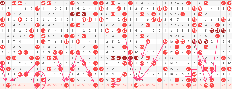 - 61-80区间:60、64、73、76、77(5个号,高区热得发烫,留73重号、60延续连号走势,再补64、76衔接热度,不脱节)。