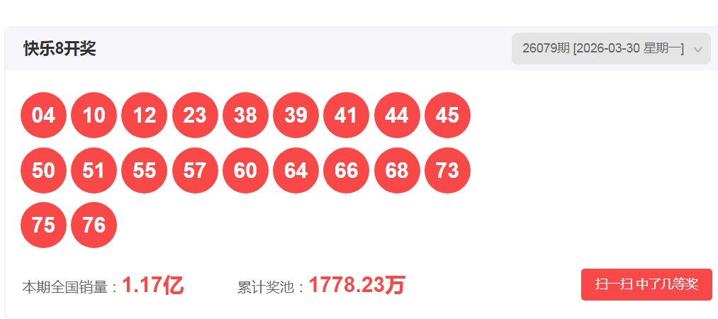 一、快乐八2026079期开奖号码