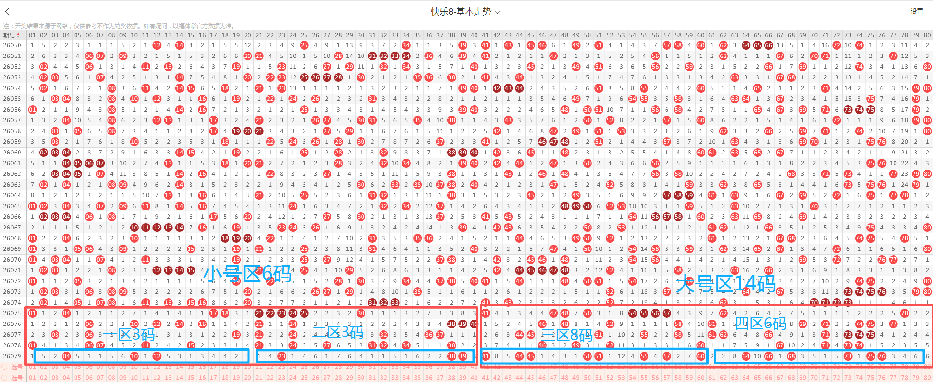 快乐8第2026080期走势分析及选号思路