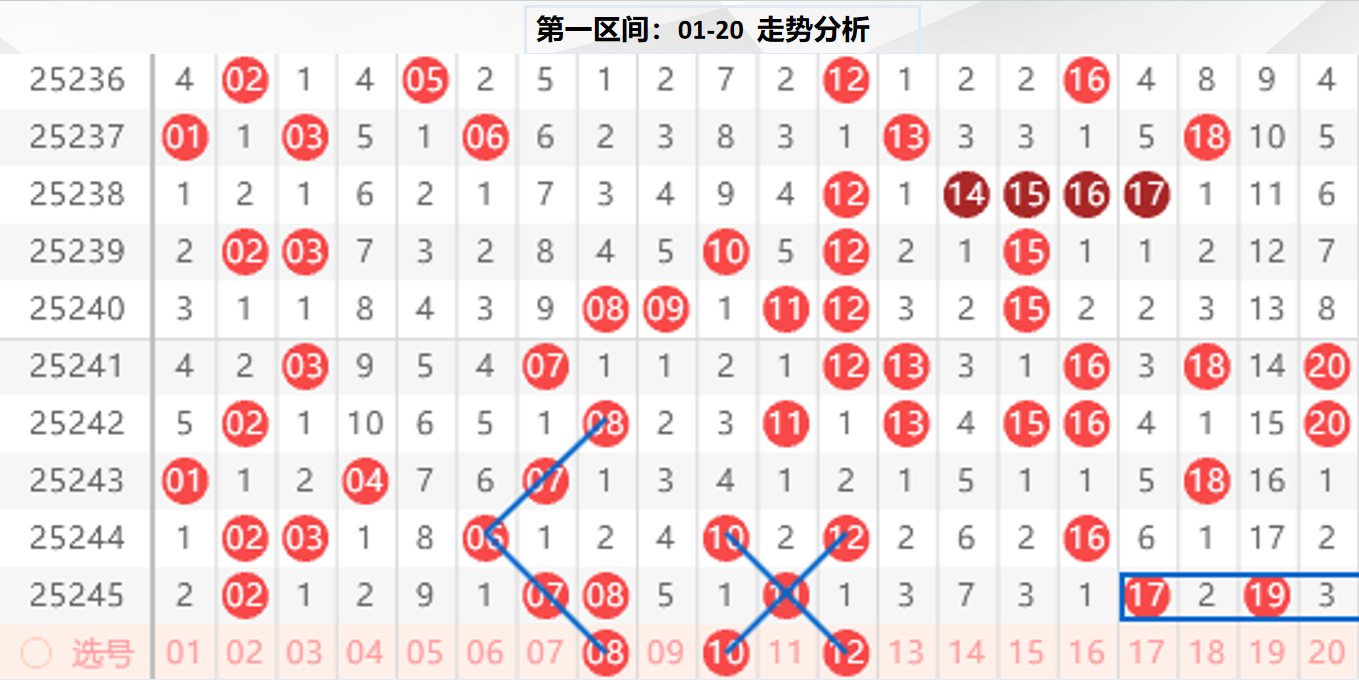 一区分析:【01-20】(走势图标注号码非小黄车大底,请谨慎参考,具体思路将在直播间分享讨论)