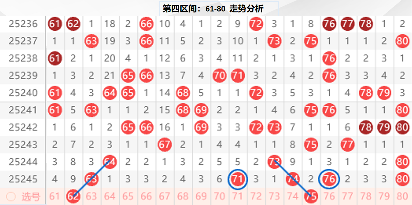 四区分析:【61-80】(走势图标注号码非小黄车大底,请谨慎参考,具体思路将在直播间分享讨论)