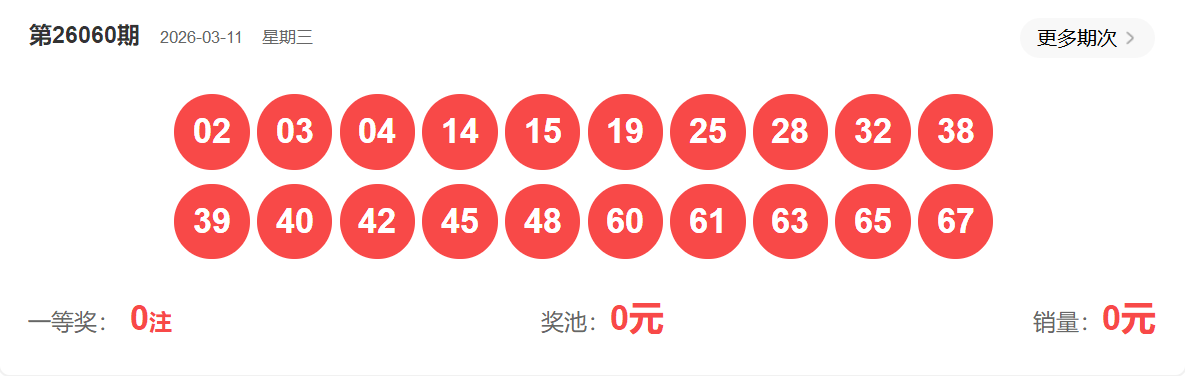 快乐8第060期开奖如下