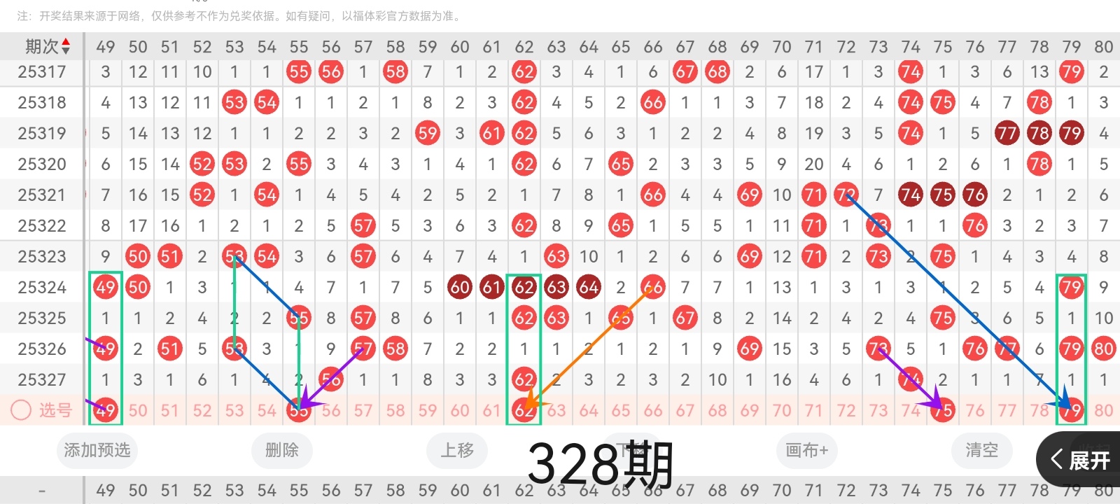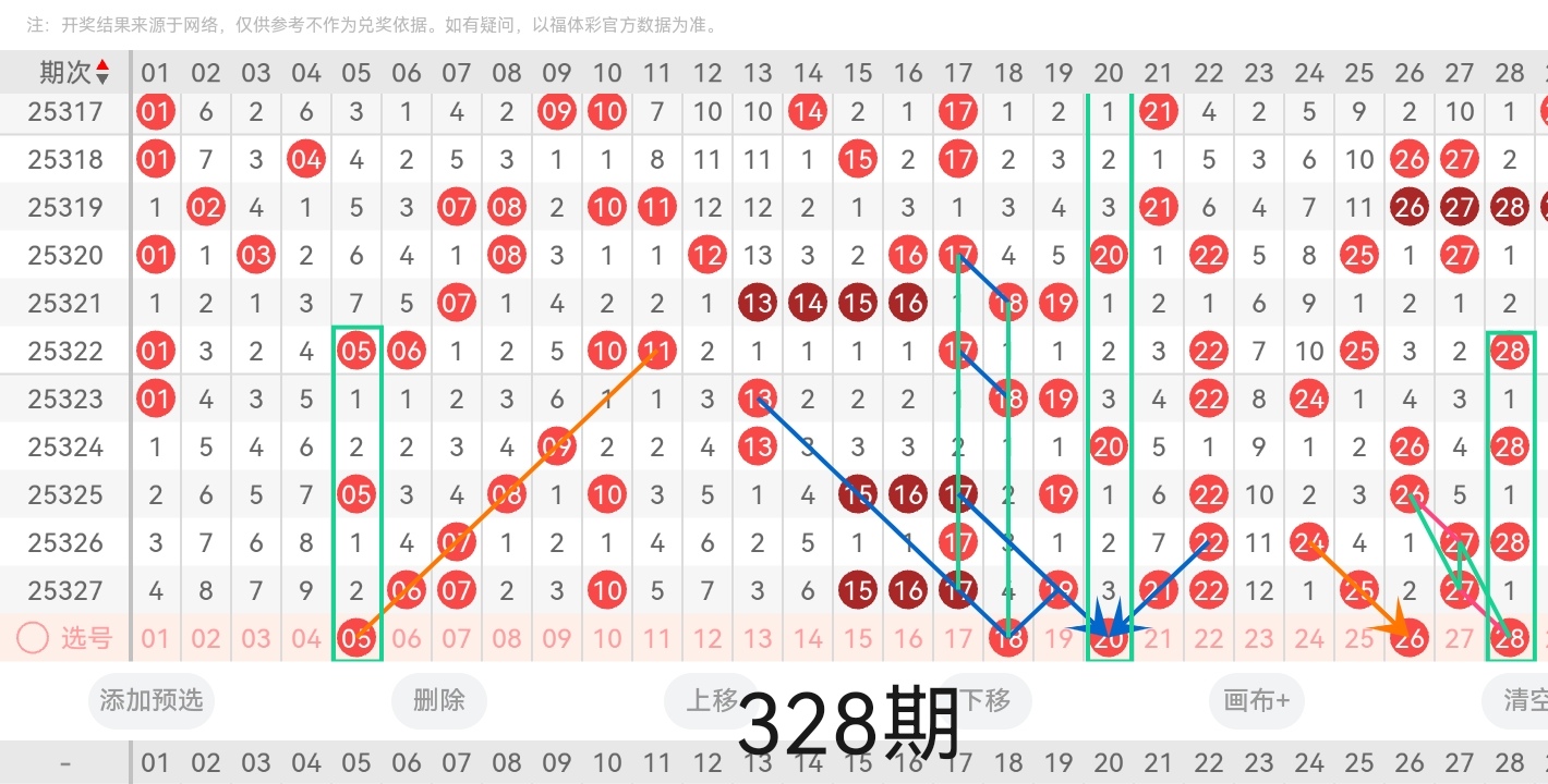 通过以上对上期的简单回顾,下面进入2025328期(下面简称本期)的选号分析: