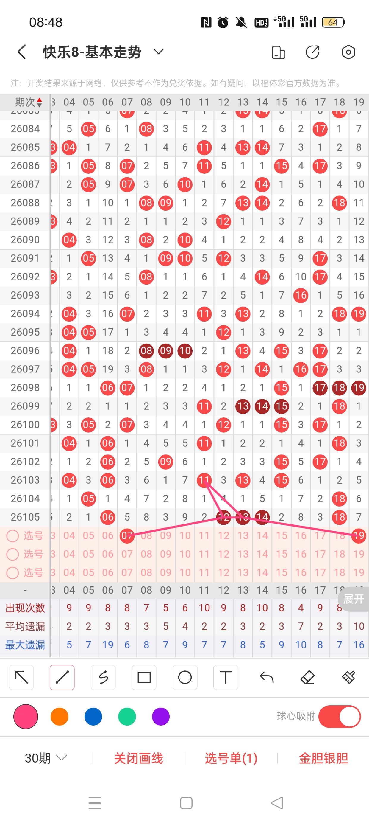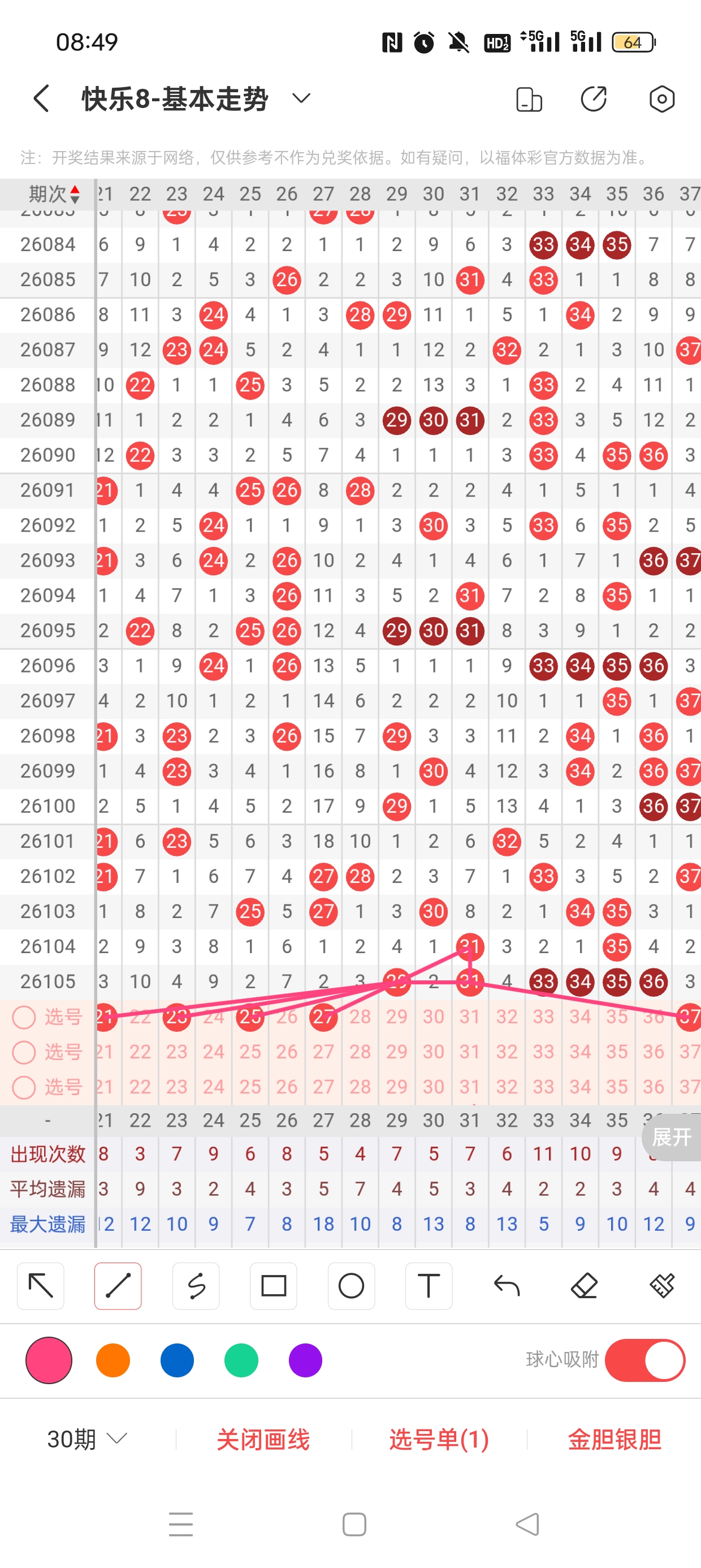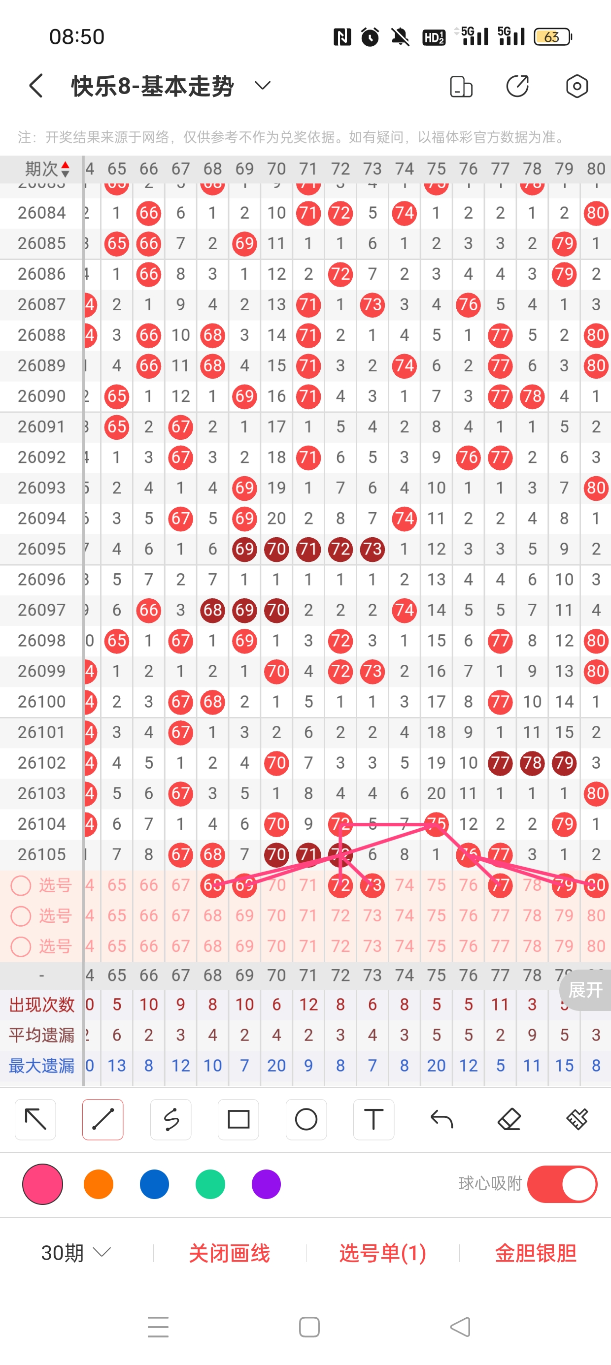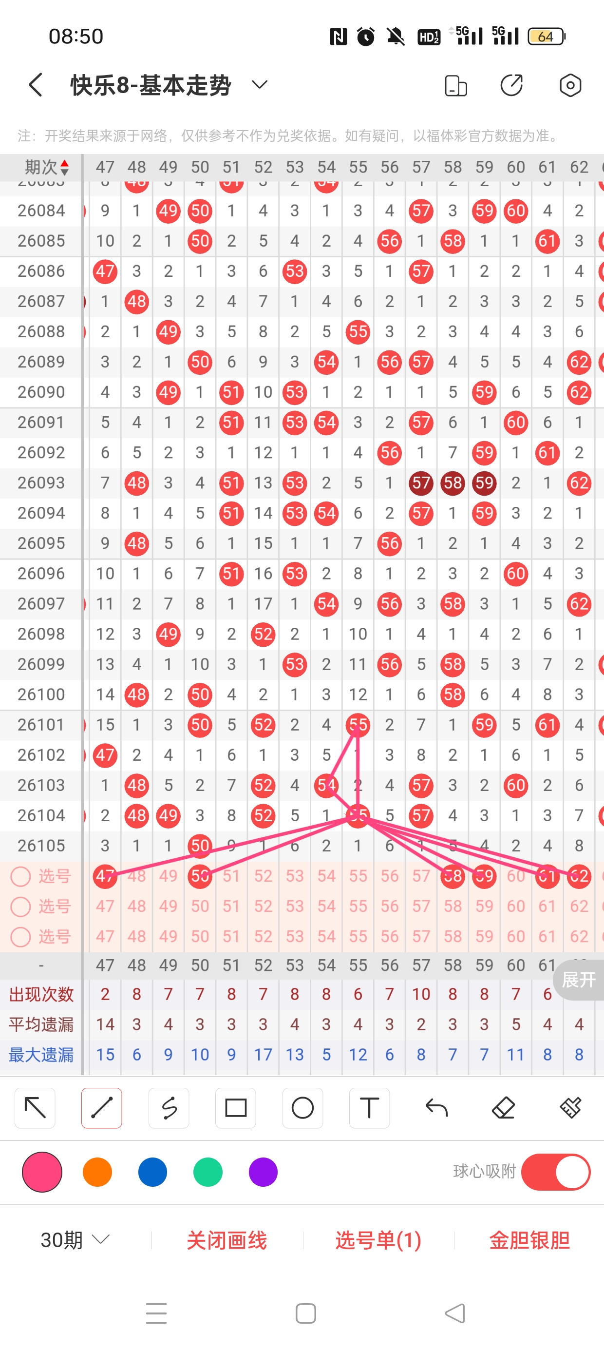 26106期快乐8,上期命中胆50