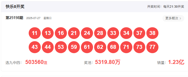 2025198期开奖号码: