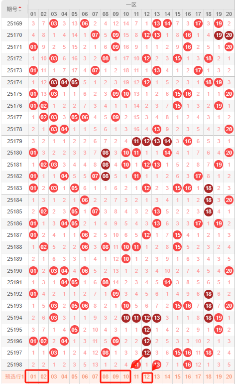 一区:最近一区10期出号情况为:1 5 4 3 8 7 3 5 6 3,总出号情况为44个,平均出号4.4个,本期推荐一区号码回补推荐出号为:01 02 08 09 10 12。重点关注:01 08 09。