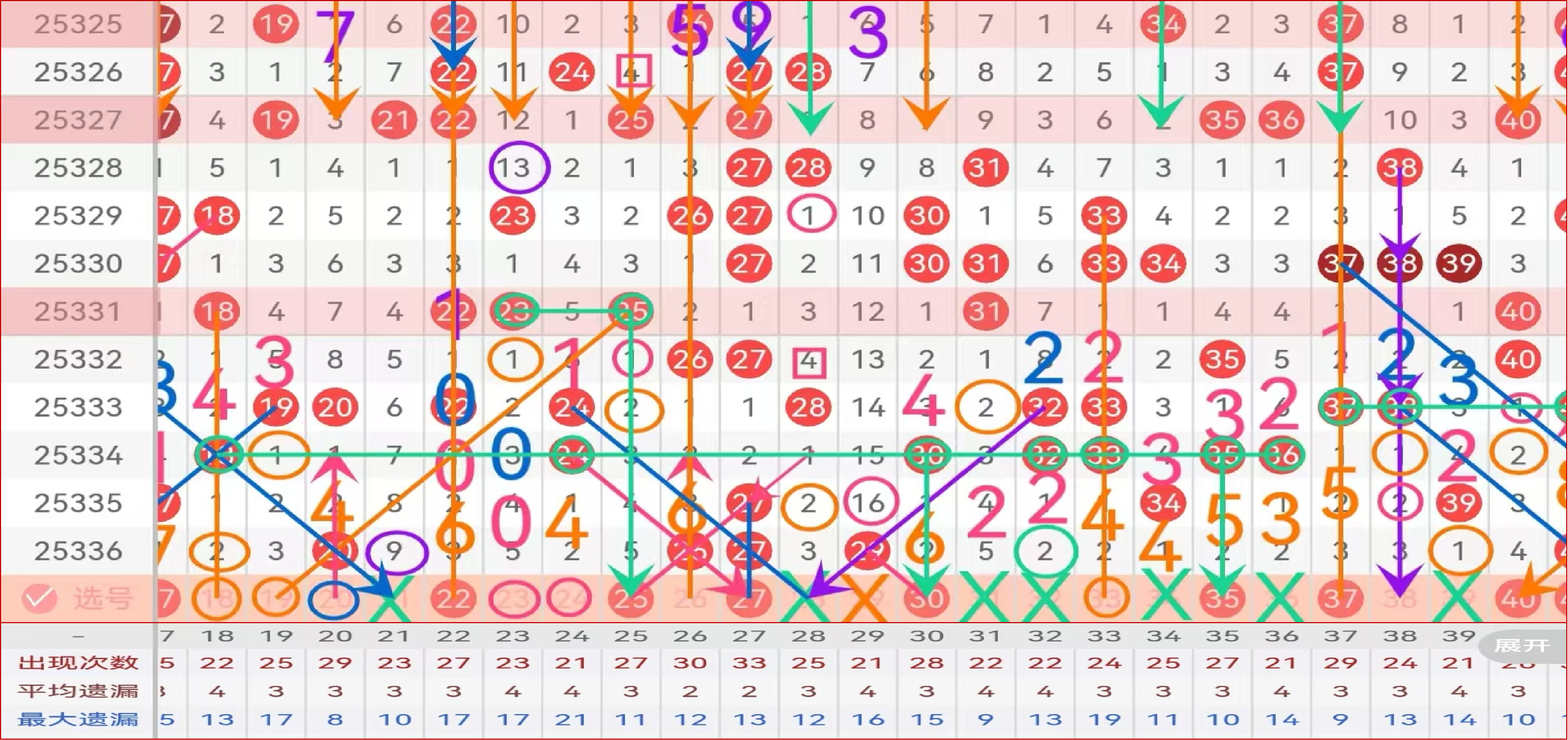 区间推荐主做号码22 25 27 30 35 37 40; 温态号码23 24 33;