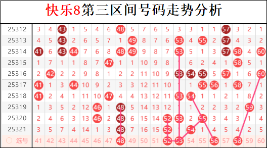 三区上一期假斯莱内下端直接擒获胆码,遗憾的是前端二选一再次搞错了方向。形态上重号破除三重走势,但是连码在上一期再次失去了踪迹。目前最明显的莫过于三重走势的接力,然后两端走势空旷,需要注意本期回补的走势。三区当前三重号聚焦于48、49、50一线,该组合已连续盘整三期,随时可能向上突围。前端41-45段沉寂多期,回补动能积聚,42、44具备反抽潜力。后端56-60区间同样存在跳步回踩需求,57、59可作防冷首选。三区连码虽暂隐,但间距压缩暗示重启在即,重点关注48与52之间的夹码走势具备爆发潜力,三重结构或演变为连码突围。