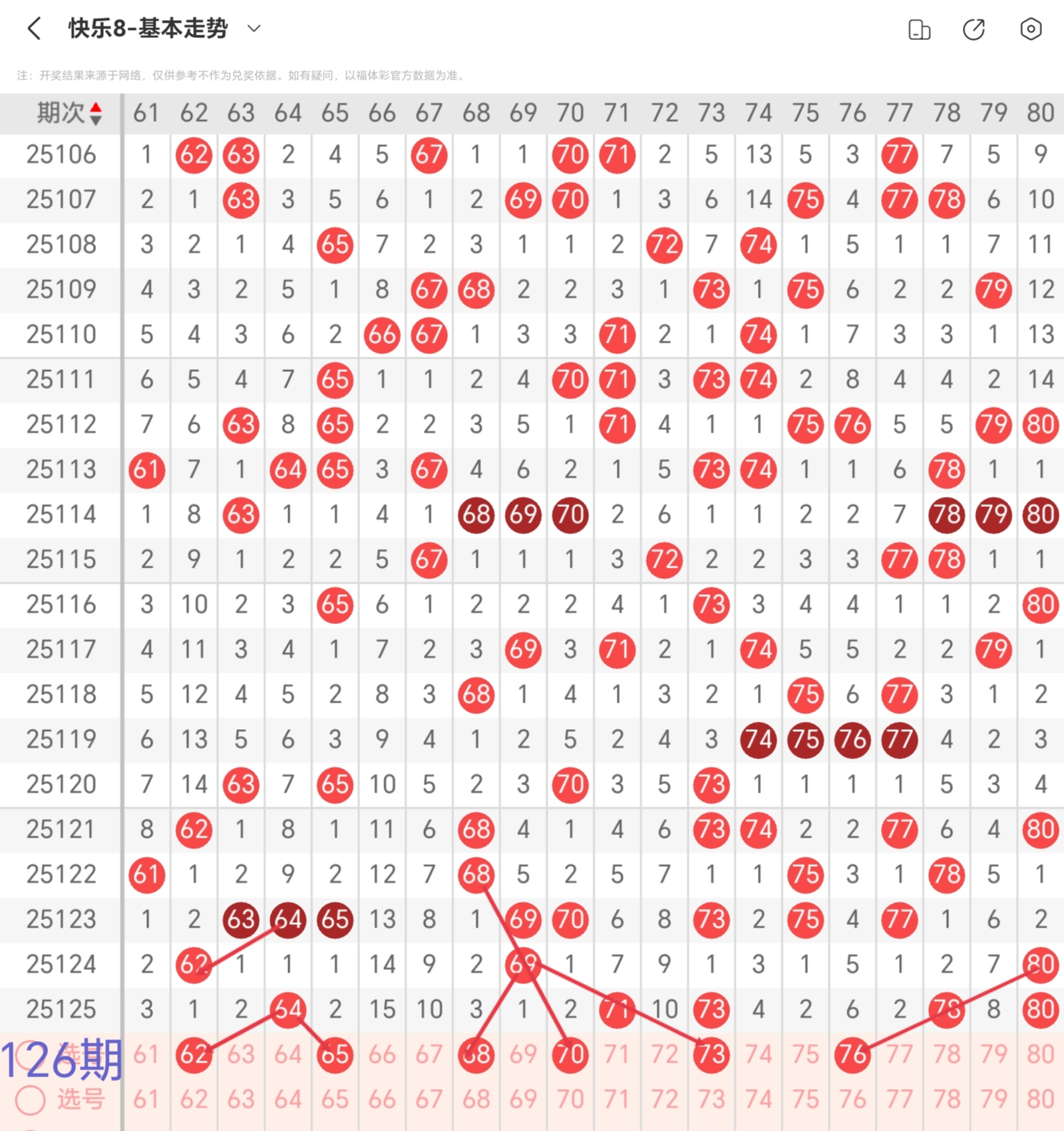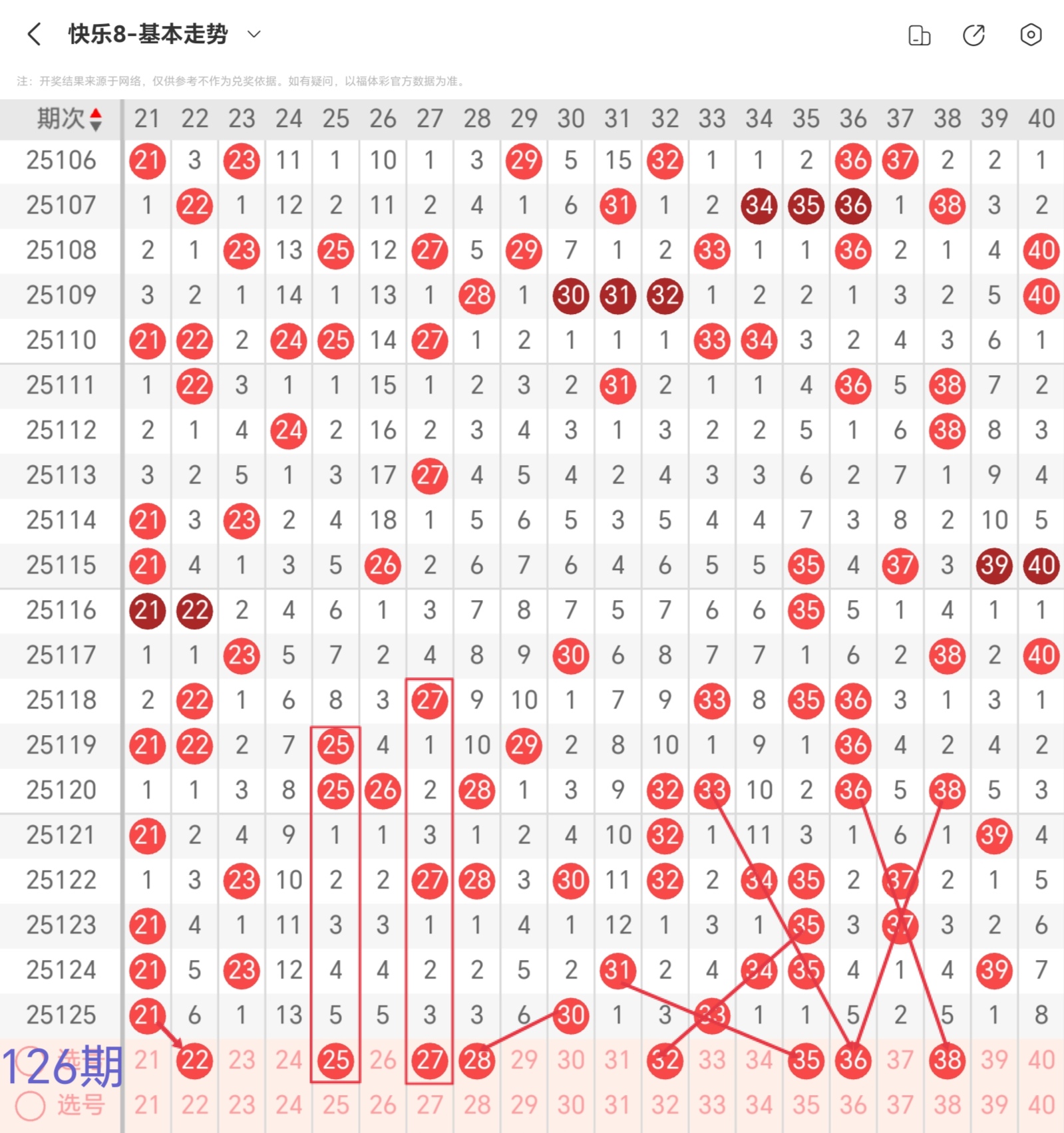 大家好,我是彩虹号作者——幸运姐。欢迎阅读我的文章,本期通过对区间分析和每周走势分析接着和大家分享快乐8的选号思路,大家理性参考!相信自己!