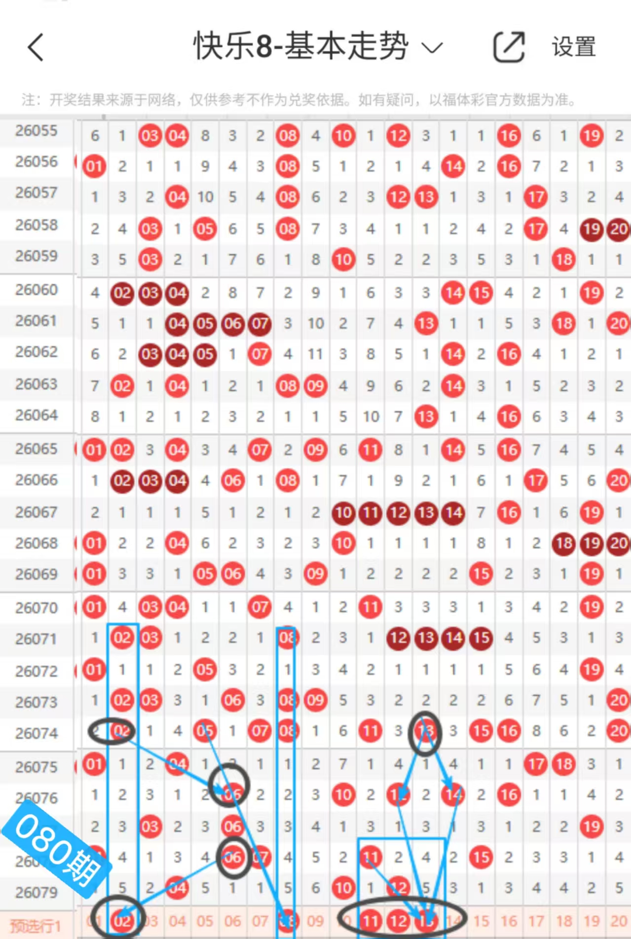 快乐八080期走势分析(本期好运连连+继续跟上吃肉)