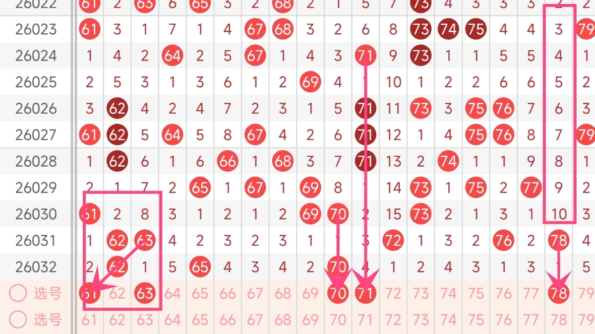 四区号码走势分析与推荐(61-80):