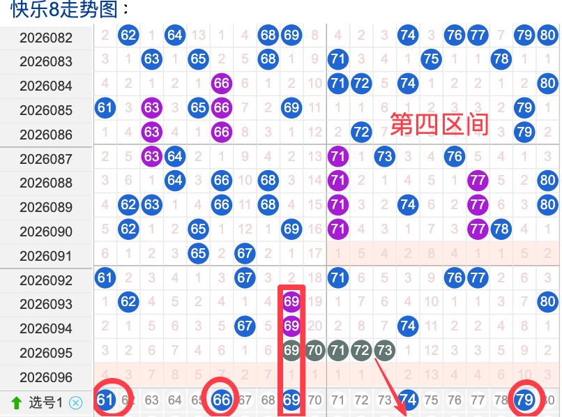 上期四区间开出了0个奖号(0)上期的四区开0个奖号呈现了一个断区趋势,开出的奖号6头回补0码,7头回补0个,先来看号码61在近 30 期内属于还是稳定的号码,近期出现频率相对热,偶尔会间隔多期后出现一次,这个号码要注意防守,号码66具有一定的间歇性近期活跃度是很稳定比如有时会间隔3到8期就再次出现,有时会间隔多期,近期整体出现频率比较温热,近期还是要关注的.号码74活跃度近期比较稳定,有一定的间歇性,整体走势有一定的波动性.