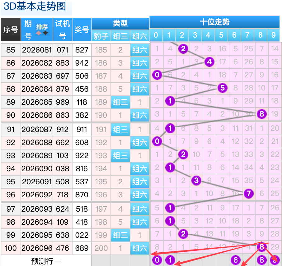 上期3D十位开出的奖号8号,上期在十位上8号球这个号码是一个6跨码号回补码的落位点,本期来看1号在十位上要注意这个号码是有机会继续走出热号分边落位的趋势这里的号码回补形态注意防守就好,再来6号球这个点位注意防守走出2跨号码的落位趋势。0号球这个小周期号的落位回补要注意参考。8号球要注意走出重号的落位回补。