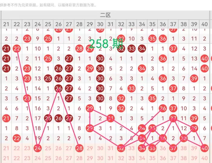 21-40区间,上期开出4个号码(22 34 36 38),此区间出号较平稳,但是短期内过冷,本期此区间可能会增加开出,预计本期该区间会有3-5个号码开出。这个区间最大的特点就是容易出现遗漏号回补和斜连号的情况。号码24遗漏19期,号码28遗漏9期,号码40遗漏7期,这几个号码符合遗漏回补的规律。号码34虽然上期已经开出,本期考虑以重号的形式再次开出,前期开出的号码34、36、38这三个号码两两带动中间号码35、37的出现,且在形态上呈现梅花走势。因此综合推荐该区间号码【24 28 32 34 35 37】