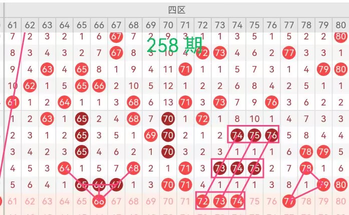 61-80区间,上期开出7个号码(65 66 67 70 71 79 80),此区间出号较多,短期内热度过冷,本期可能会出现一定程度的保温的情况,预计本期将会出现3-5个号码。号码77遗漏8期,本期考虑这个号码会回补开出。近期该区间经常出现三连号的形式,根据画线上面来看,72、73、74这组三连号码最有可能出现。整体来看,本区间的奇偶比需要引起重视,因为近几期奇数明显占优,本期可适当再次关注一些就偶数号码如66来回补其奇偶平衡。因此综合推荐该区间号码【66 72 73 74 77】