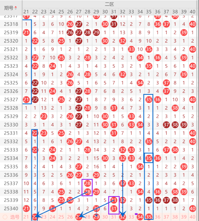 二区间注意参考号22.25.27.29.32.34.35.38中关注3-4码开出机会。