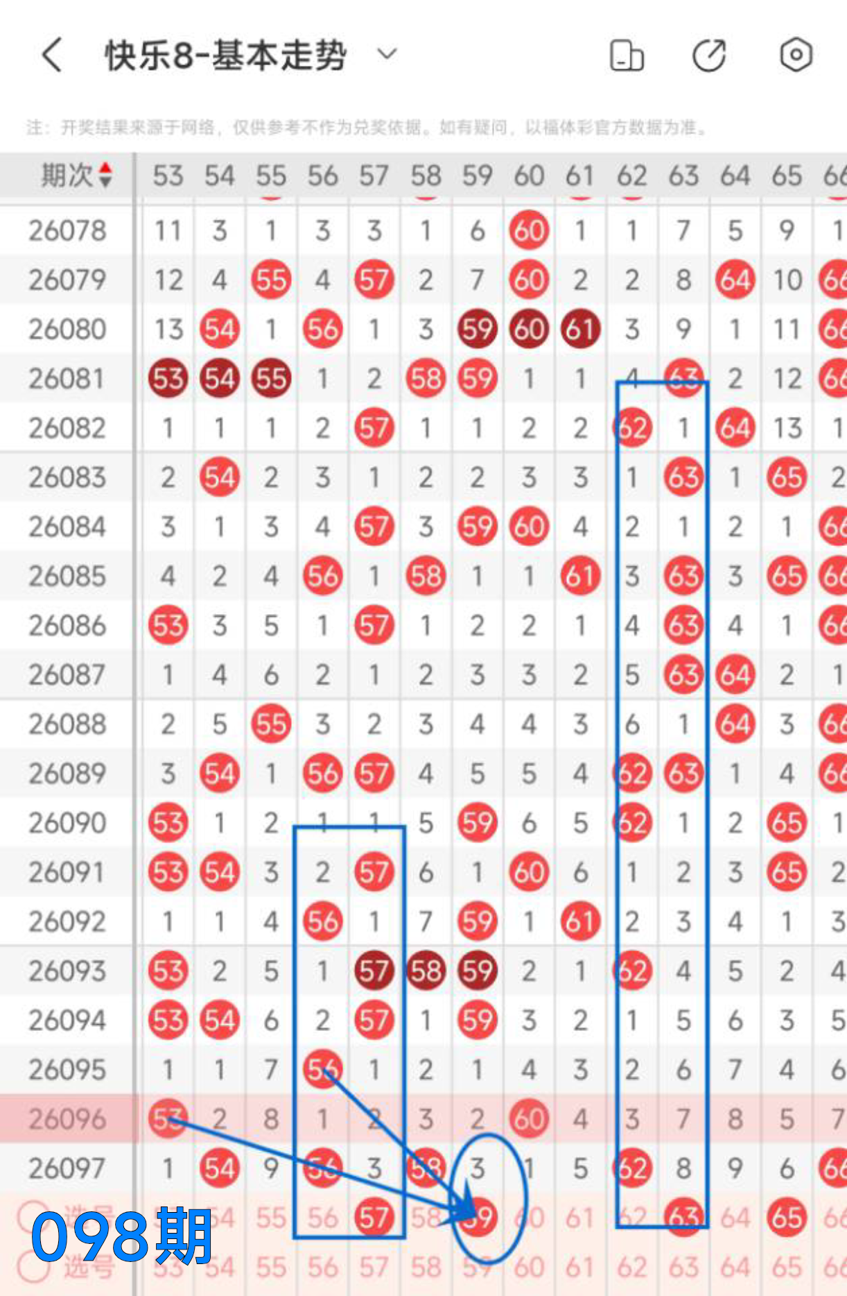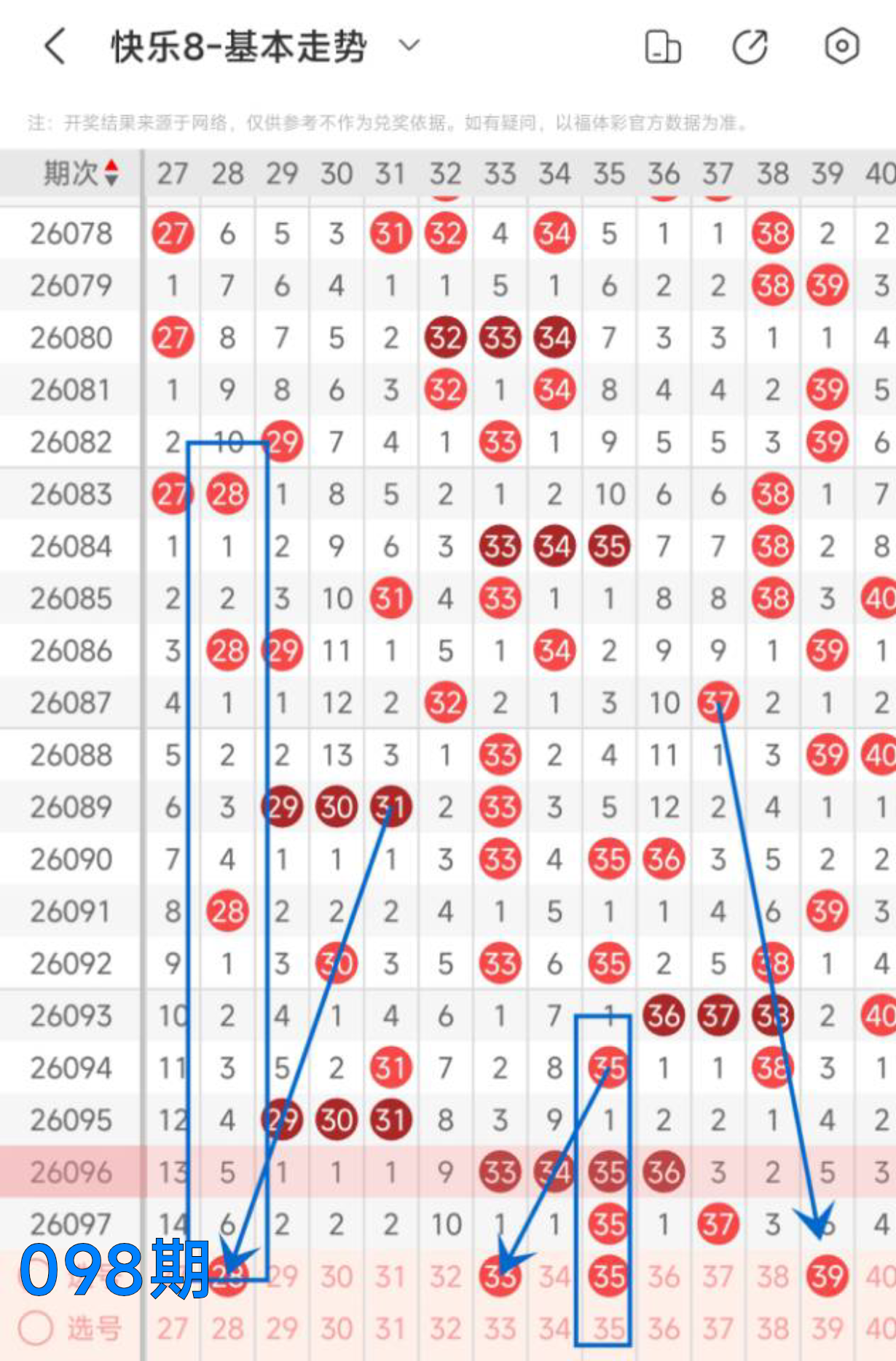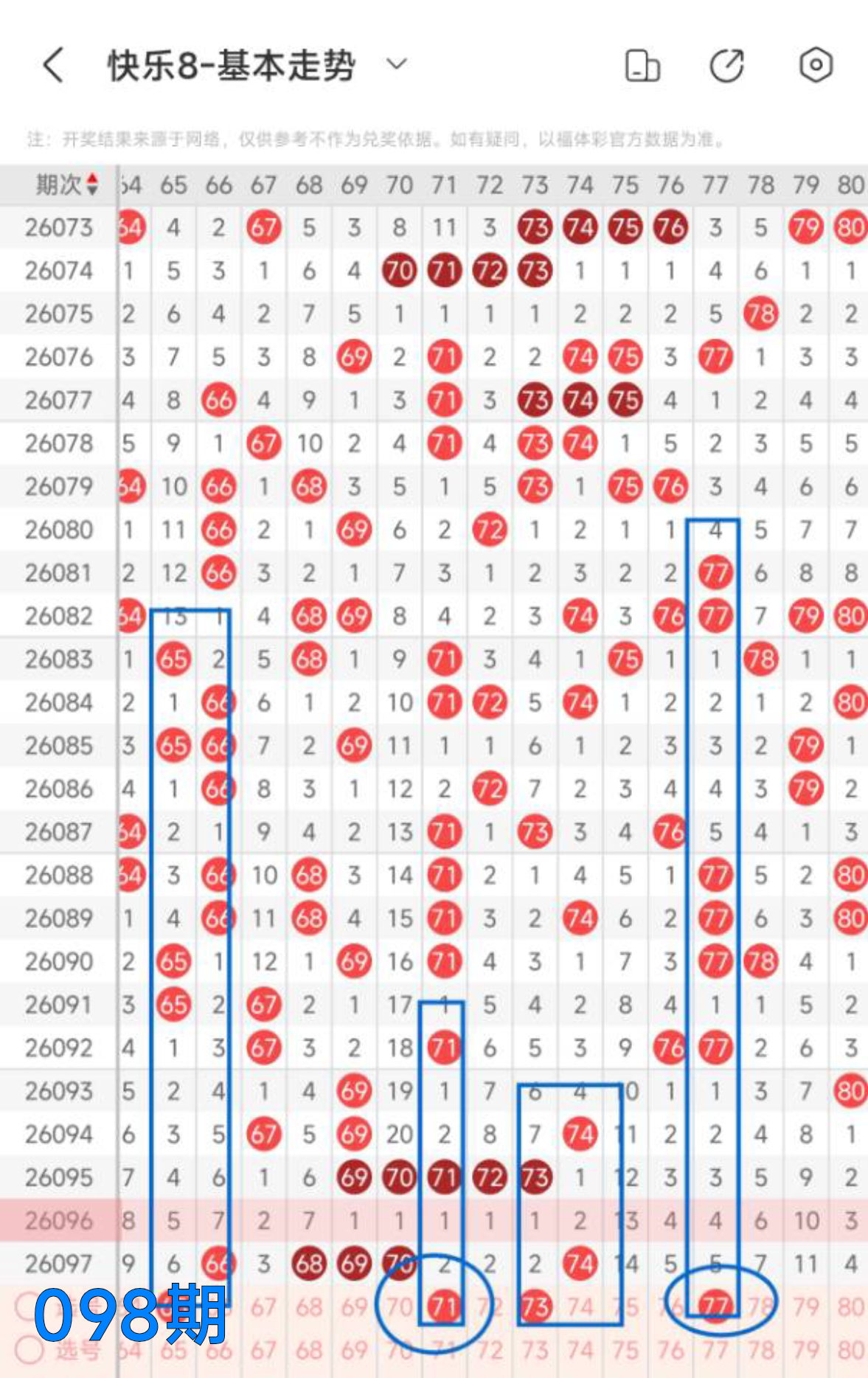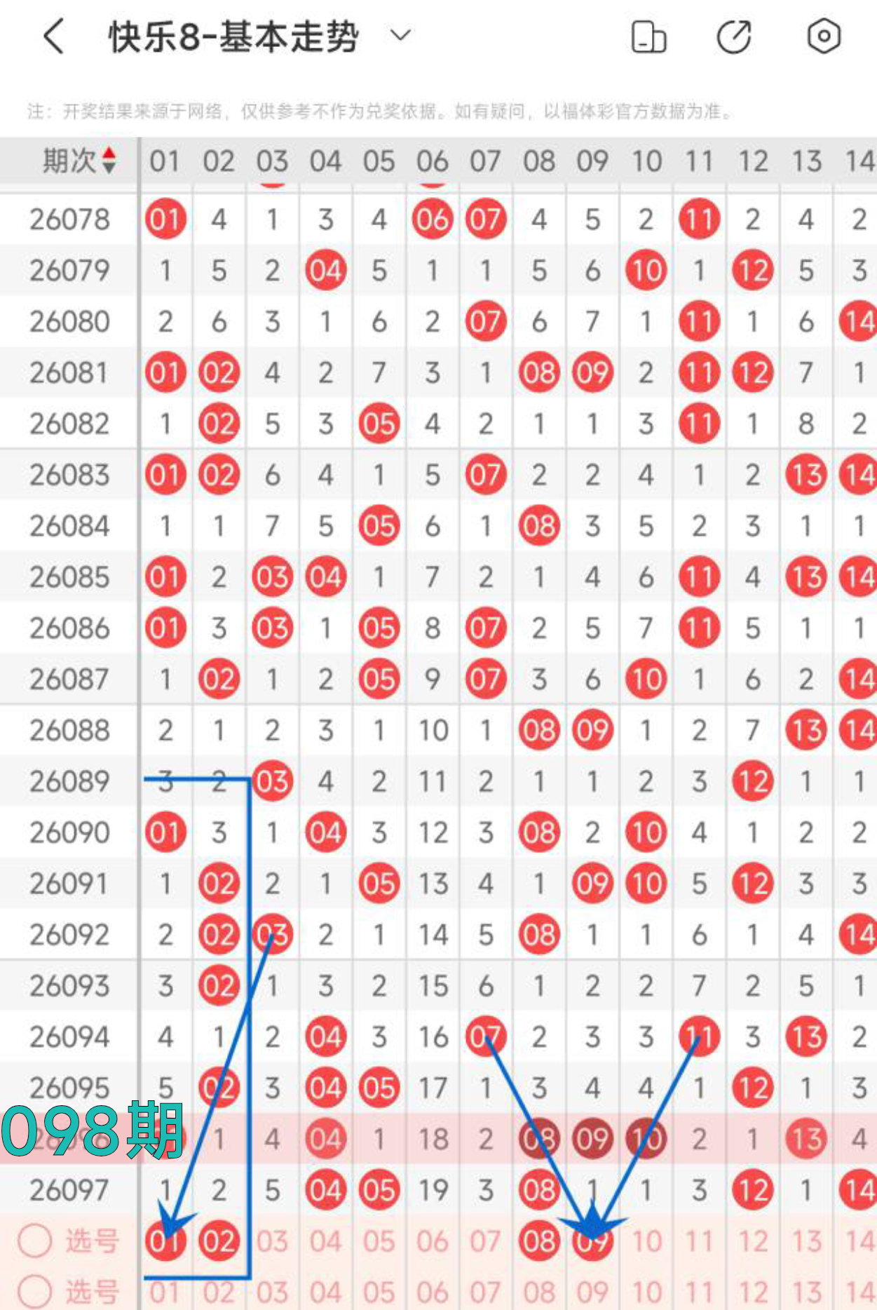快乐八098期走势分析(本期机会不错+继续冲击全拖大奖)