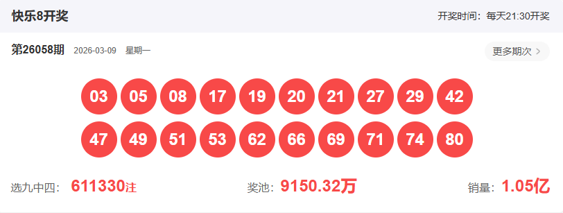今日快乐8第26059期分析推荐