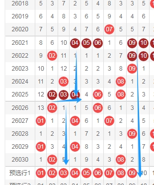 大家好,本人蔡楚门,一个玩彩十几年的老彩民,现在来本平台分享一下本人的对彩票的分析思路和看法,希望本人的文章能够给你们带来灵感和好的运气,首先感谢一起彩提供一个好的平台,接下来分析一下福彩快乐8第2026031期号码思路。换个方法来分析福彩快乐8思路,以防新彩民不会懂下面名词意思,先给大家下面名称解释,连号组合是像0102 0203 0304 0405这样的组合,跨度二组合是像0103 0204 0305 0406这样的组合。重点看下面走势图的用蓝色小圈圈标注出来的地方。我只分析连号和跨度二组合,只想着能对个选二或者选四就够了。
