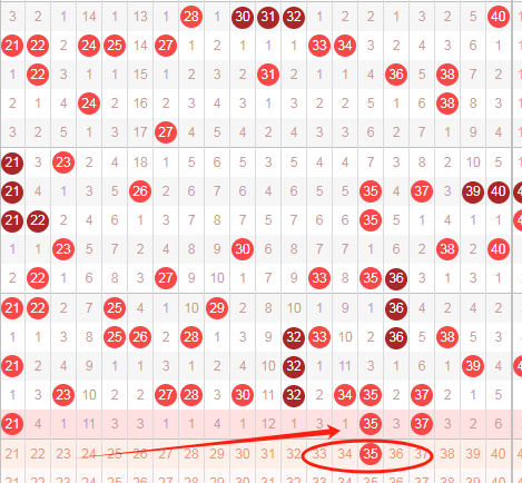 - **34**:中区冷号,与热号**35**形成夹码(34-35-36)