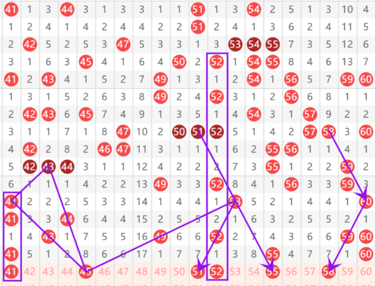 ⭐三区重点号码:45 51 52 55 58 ,防守号码:41
