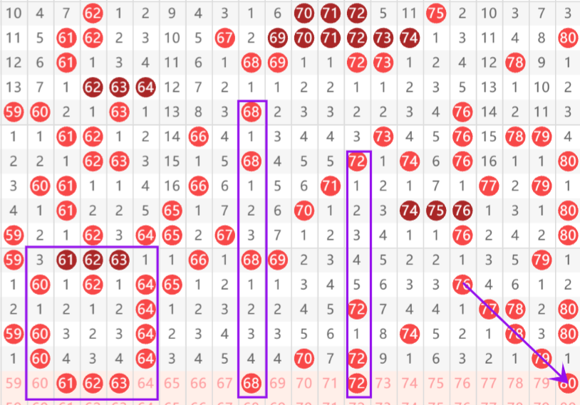 ⭐四区重点号码:61 62 63 68 72;防守号码: 80