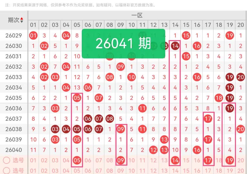 上期第一区间开奖3个号码,本期可能会增加开出。05位于区段前端,形态规整,适合做前端锚点;09尾数稳定,与周边号码搭配和谐,适配14的组合;14处于区段中部,衔接前后号码,提升组合连贯性;17靠近后端,平衡区段出号重心;19收尾,让一区号码前后舒展、疏密得当。