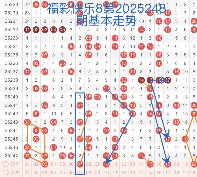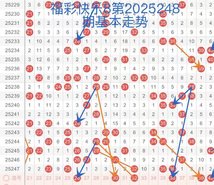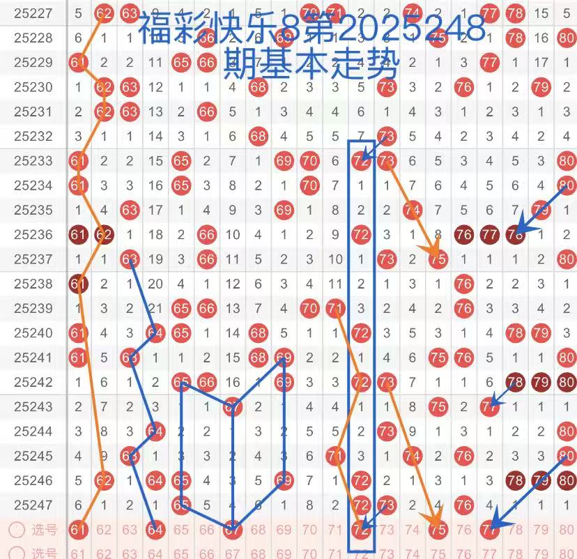 下面是我对2025248期福彩快乐8的分析和预判,希望通过我的分析能让大家今晚大满贯!福彩快乐8上期开奖号码如下图