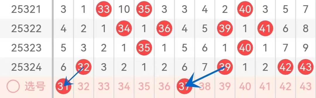 31-40区域:近三期出号数量为:3.2.2,本期需要关注的数字:31.37,本期该区域应属冷号段,不看好