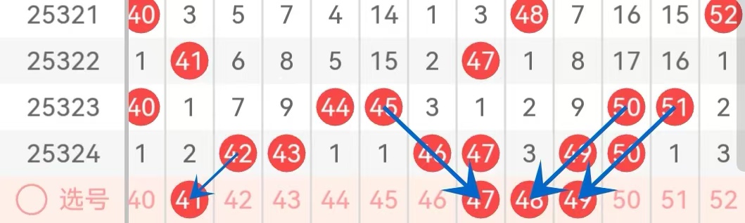 41-50区域:近三期出号数量为:2.3.6,本期重点关注数字:41.47.48,需要预防47.48.49一起出现的可能性,胆拖需要预防:44.45.47.48号段